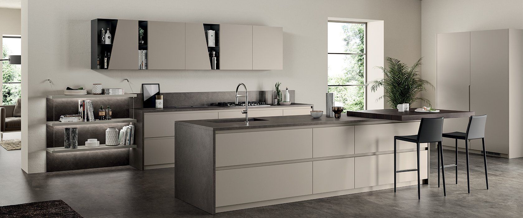 Il volto più contemporaneo delle cucine Scavolini è forse quello della collezione Carattere, che si esprime attraverso una nuova gamma di laccati lucidi e opachi che ne potenziano l’appeal.