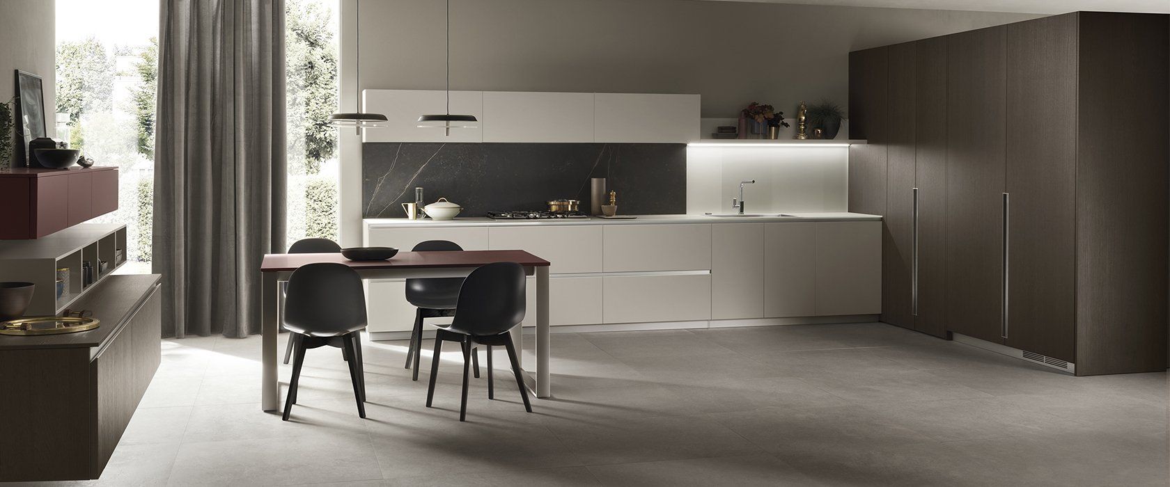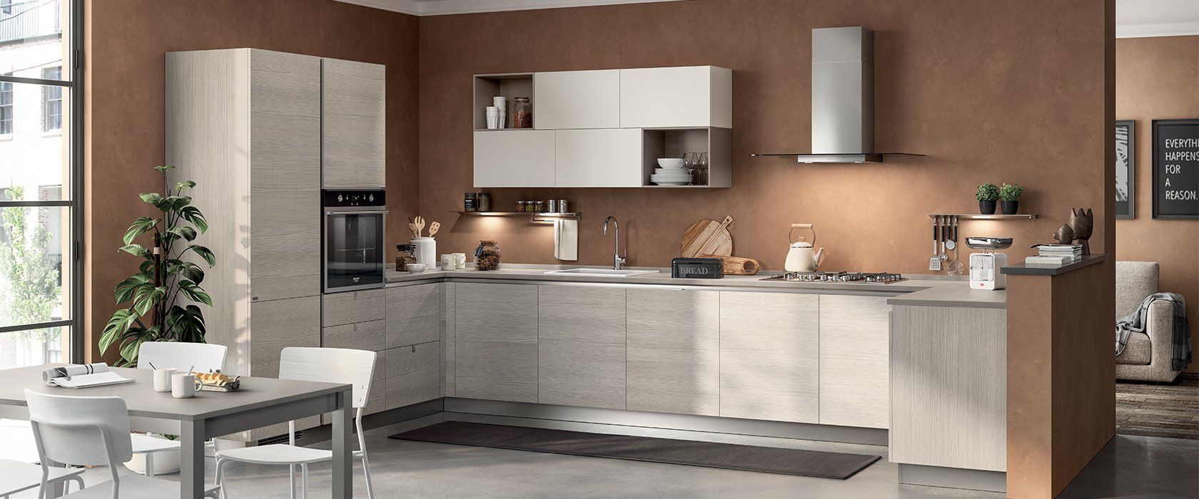 Alle finiture d’impronta contemporanea si aggiungono poi soluzioni uniche, come lo schienale magnetico Orizzonte Up in laminato stratificato, creato appositamente per una gamma specifica di laminati e dotato di una lastra metallica interna, grazie alla quale è possibile utilizzare anche su queste cucine la nuova collezione di accessori Magneto, grandi alleati degli italiani in cucina!